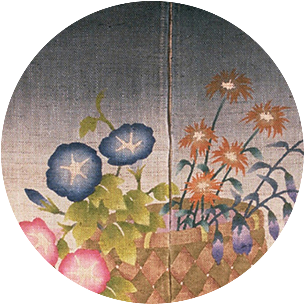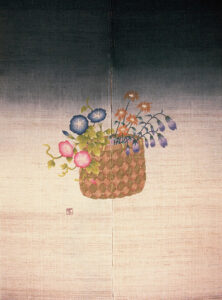 ろうけつ染暖簾「花籠」